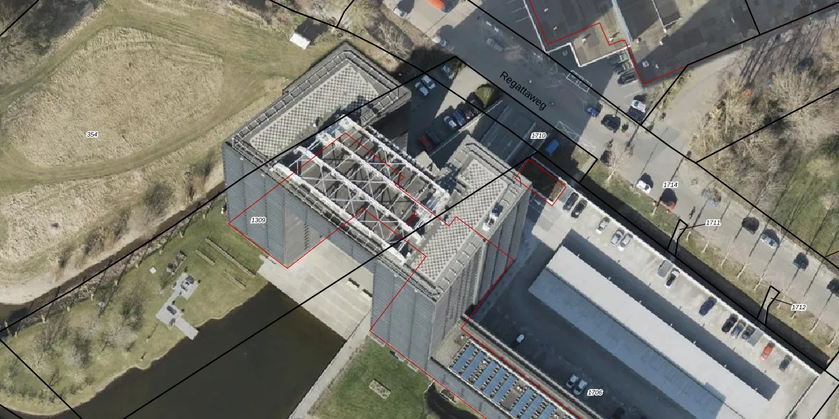 Het perceel waarop Regattaweg 18 staat heeft een oppervlakte van 3950 m². Dit is een zeer groot perceel. De perceeloppervlakte wordt geregistreerd door het Kadaster. Gedetailleerde informatie over de maten van dit perceel kunt u vinden in het rapport Kadastrale kaart met maatvoering van Regattaweg 18.