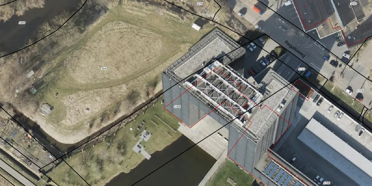 Het perceel waarop Regattaweg 180 staat heeft een oppervlakte van 3950 m². Dit is een zeer groot perceel. De perceeloppervlakte wordt geregistreerd door het Kadaster. Gedetailleerde informatie over de maten van dit perceel kunt u vinden in het rapport Kadastrale kaart met maatvoering van Regattaweg 180.