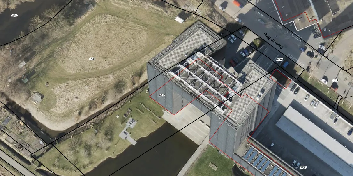 Het perceel waarop Regattaweg 186 staat heeft een oppervlakte van 3950 m². Dit is een zeer groot perceel. De perceeloppervlakte wordt geregistreerd door het Kadaster. Gedetailleerde informatie over de maten van dit perceel kunt u vinden in het rapport Kadastrale kaart met maatvoering van Regattaweg 186.