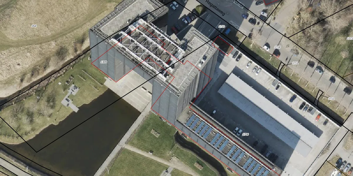 Het perceel waarop Regattaweg 444 staat heeft een oppervlakte van 1,1 ha. Dit is een zeer groot perceel. De perceeloppervlakte wordt geregistreerd door het Kadaster. Gedetailleerde informatie over de maten van dit perceel kunt u vinden in het rapport Kadastrale kaart met maatvoering van Regattaweg 444.