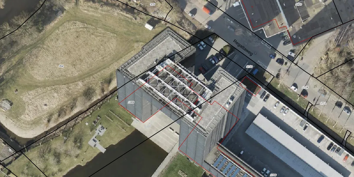 Het perceel waarop Regattaweg 96 staat heeft een oppervlakte van 3950 m². Dit is een zeer groot perceel. De perceeloppervlakte wordt geregistreerd door het Kadaster. Gedetailleerde informatie over de maten van dit perceel kunt u vinden in het rapport Kadastrale kaart met maatvoering van Regattaweg 96.