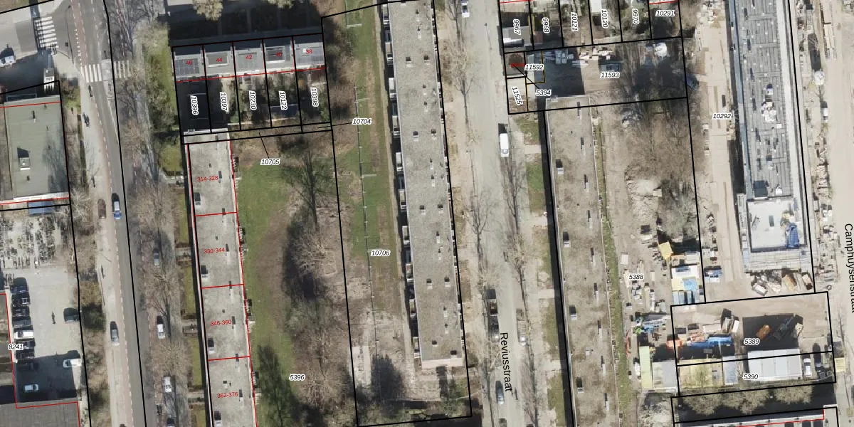 Het perceel waarop Reviusstraat 113 staat heeft een oppervlakte van 2608 m². Dit is een zeer groot perceel. De perceeloppervlakte wordt geregistreerd door het Kadaster. Gedetailleerde informatie over de maten van dit perceel kunt u vinden in het rapport Kadastrale kaart met maatvoering van Reviusstraat 113.