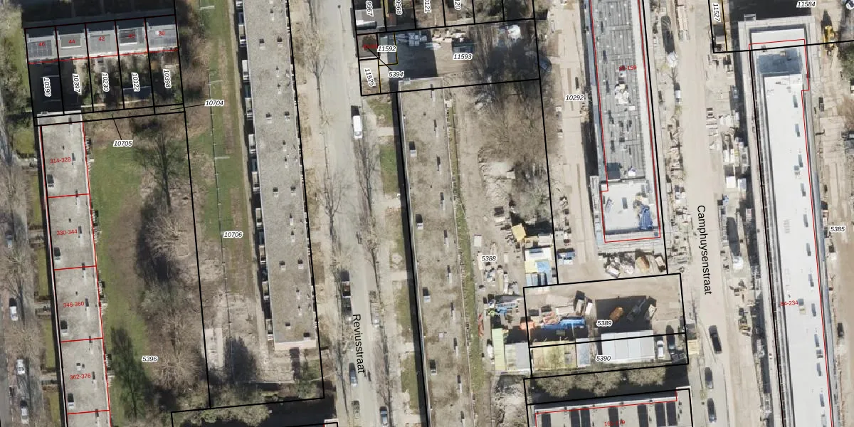 Het perceel waarop Reviusstraat 120 staat heeft een oppervlakte van 3333 m². Dit is een zeer groot perceel. De perceeloppervlakte wordt geregistreerd door het Kadaster. Gedetailleerde informatie over de maten van dit perceel kunt u vinden in het rapport Kadastrale kaart met maatvoering van Reviusstraat 120.
