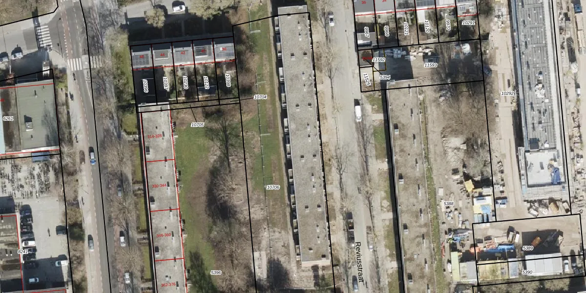 Het perceel waarop Reviusstraat 135 staat heeft een oppervlakte van 2608 m². Dit is een zeer groot perceel. De perceeloppervlakte wordt geregistreerd door het Kadaster. Gedetailleerde informatie over de maten van dit perceel kunt u vinden in het rapport Kadastrale kaart met maatvoering van Reviusstraat 135.