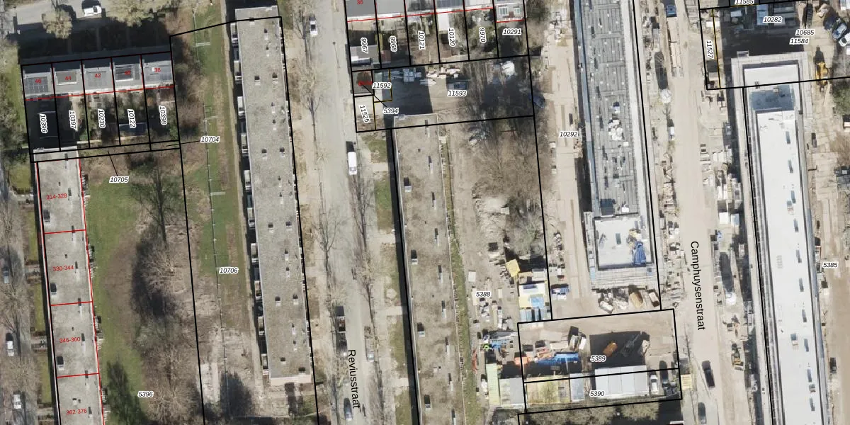 Het perceel waarop Reviusstraat 142 staat heeft een oppervlakte van 3333 m². Dit is een zeer groot perceel. De perceeloppervlakte wordt geregistreerd door het Kadaster. Gedetailleerde informatie over de maten van dit perceel kunt u vinden in het rapport Kadastrale kaart met maatvoering van Reviusstraat 142.