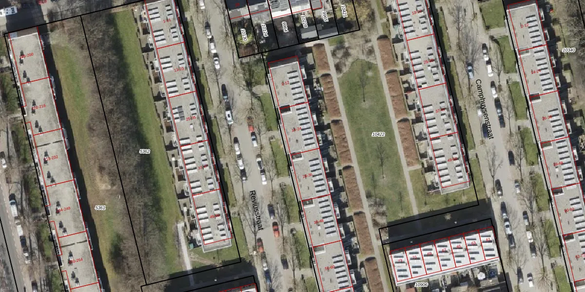 Het perceel waarop Reviusstraat 18 staat heeft een oppervlakte van 5978 m². Dit is een zeer groot perceel. De perceeloppervlakte wordt geregistreerd door het Kadaster. Gedetailleerde informatie over de maten van dit perceel kunt u vinden in het rapport Kadastrale kaart met maatvoering van Reviusstraat 18.