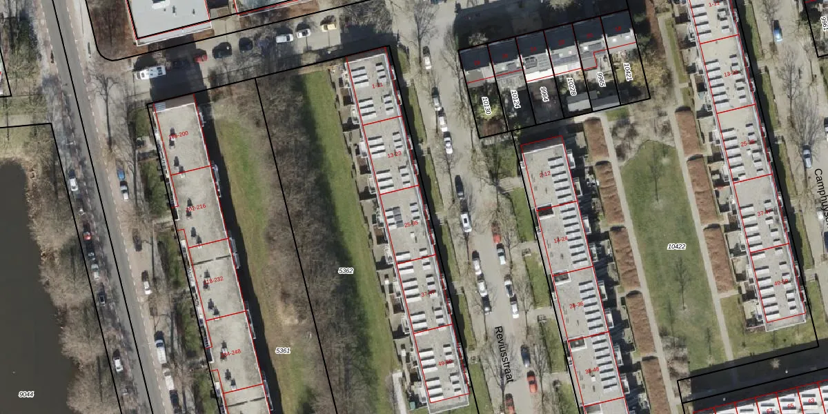 Het perceel waarop Reviusstraat 25 staat heeft een oppervlakte van 3124 m². Dit is een zeer groot perceel. De perceeloppervlakte wordt geregistreerd door het Kadaster. Gedetailleerde informatie over de maten van dit perceel kunt u vinden in het rapport Kadastrale kaart met maatvoering van Reviusstraat 25.