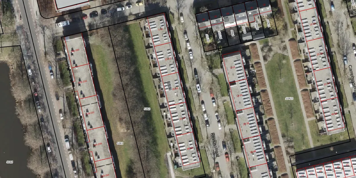 Het perceel waarop Reviusstraat 27 staat heeft een oppervlakte van 3124 m². Dit is een zeer groot perceel. De perceeloppervlakte wordt geregistreerd door het Kadaster. Gedetailleerde informatie over de maten van dit perceel kunt u vinden in het rapport Kadastrale kaart met maatvoering van Reviusstraat 27.