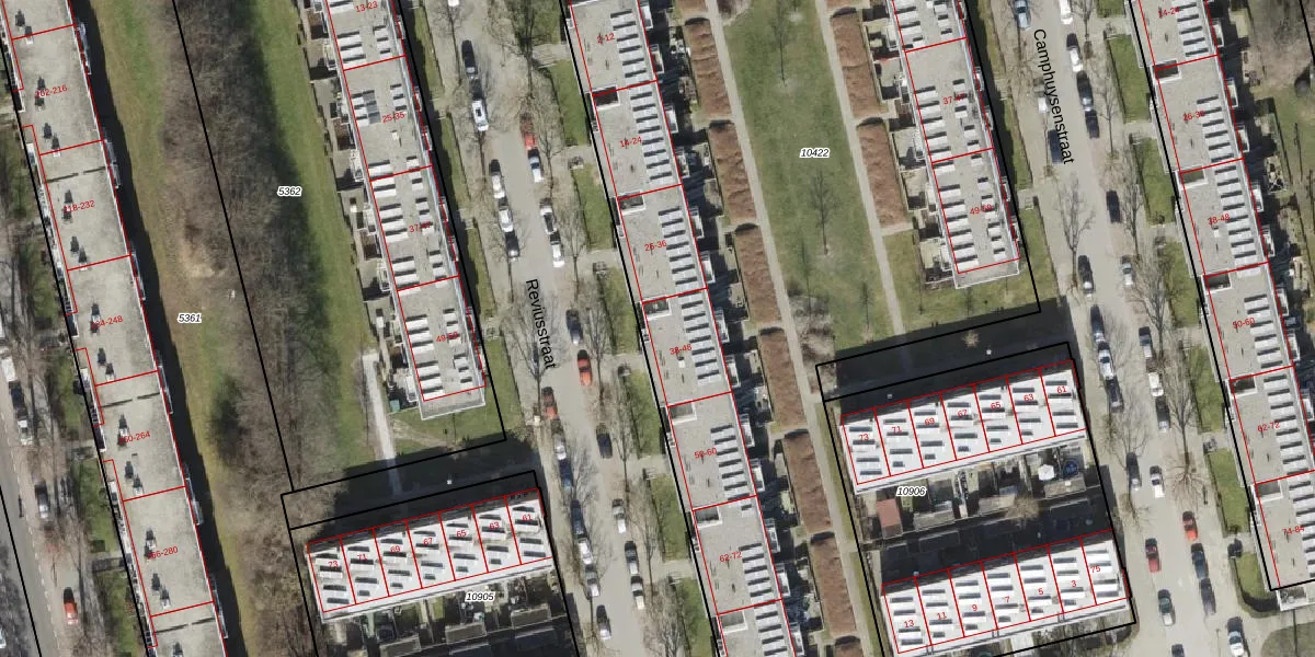 Het perceel waarop Reviusstraat 38 staat heeft een oppervlakte van 5978 m². Dit is een zeer groot perceel. De perceeloppervlakte wordt geregistreerd door het Kadaster. Gedetailleerde informatie over de maten van dit perceel kunt u vinden in het rapport Kadastrale kaart met maatvoering van Reviusstraat 38.