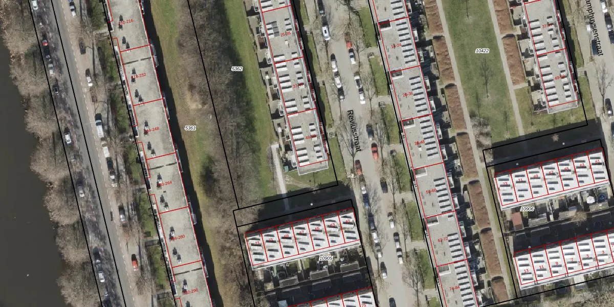 Het perceel waarop Reviusstraat 59 staat heeft een oppervlakte van 3124 m². Dit is een zeer groot perceel. De perceeloppervlakte wordt geregistreerd door het Kadaster. Gedetailleerde informatie over de maten van dit perceel kunt u vinden in het rapport Kadastrale kaart met maatvoering van Reviusstraat 59.