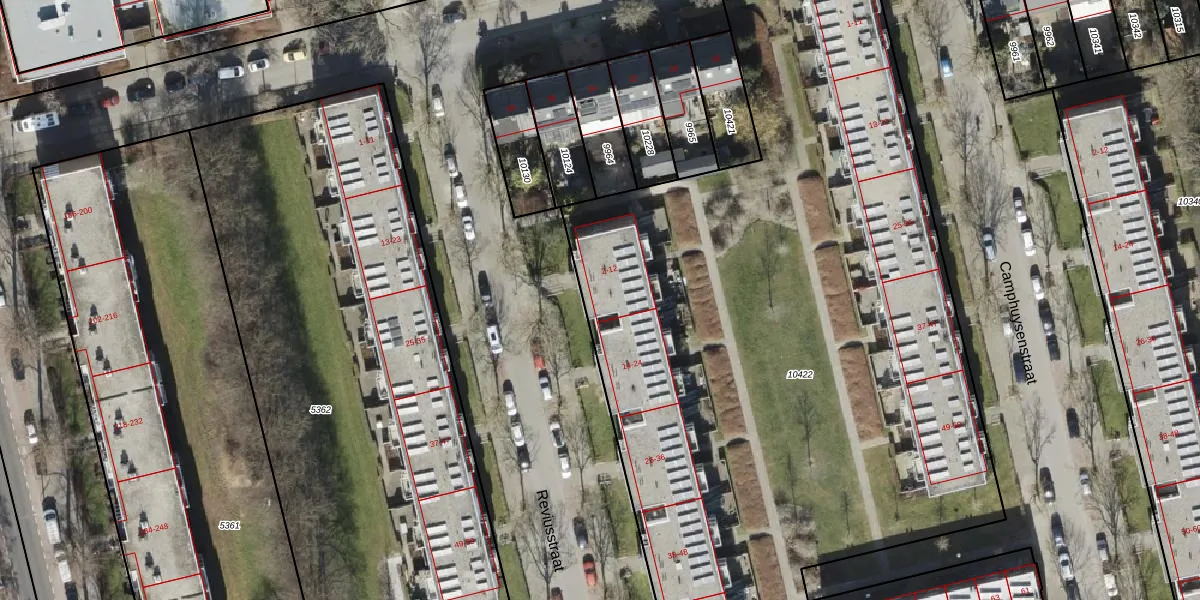 Het perceel waarop Reviusstraat 6 staat heeft een oppervlakte van 5978 m². Dit is een zeer groot perceel. De perceeloppervlakte wordt geregistreerd door het Kadaster. Gedetailleerde informatie over de maten van dit perceel kunt u vinden in het rapport Kadastrale kaart met maatvoering van Reviusstraat 6.