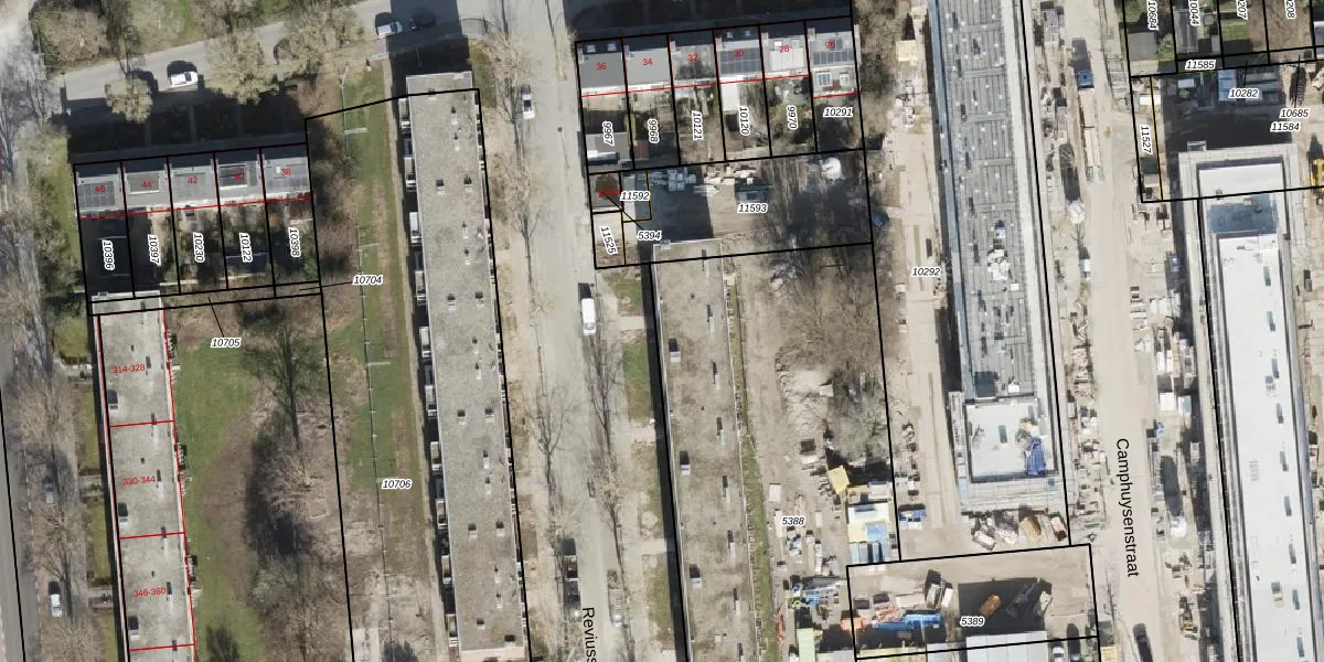 Het perceel waarop Reviusstraat 90 staat heeft een oppervlakte van 3333 m². Dit is een zeer groot perceel. De perceeloppervlakte wordt geregistreerd door het Kadaster. Gedetailleerde informatie over de maten van dit perceel kunt u vinden in het rapport Kadastrale kaart met maatvoering van Reviusstraat 90.