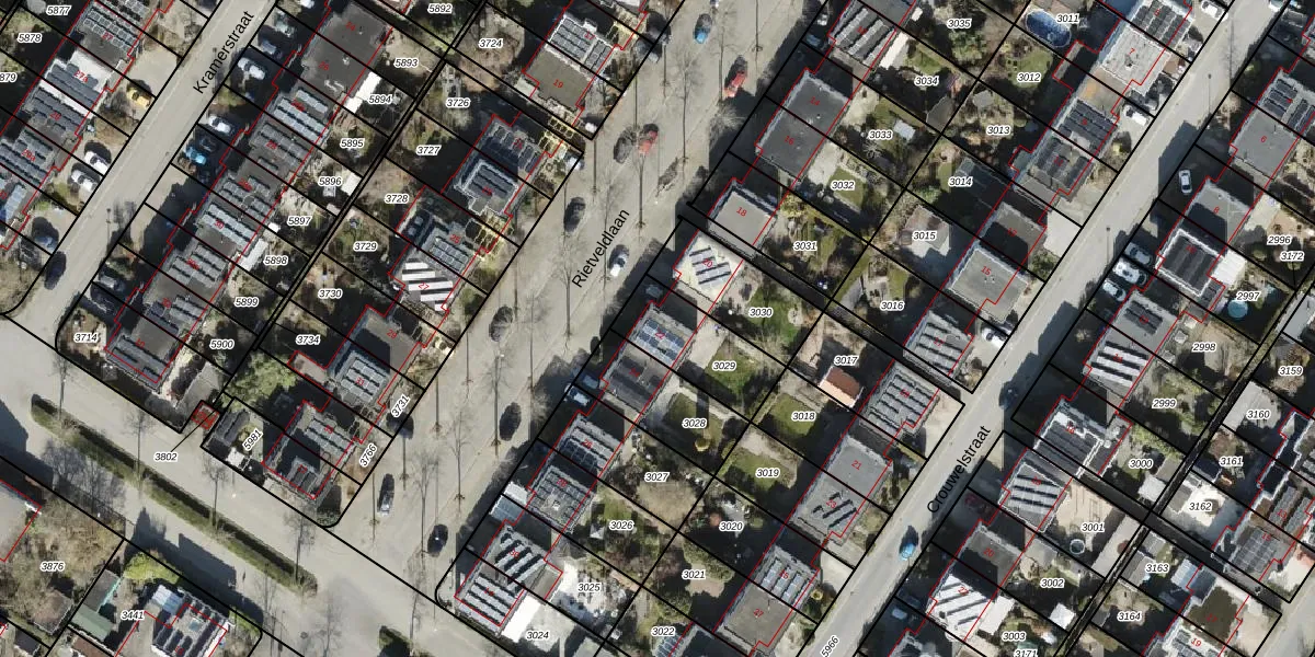 Rietveldlaan 22 is gelegen op kadastraal perceel GNG01AC3029. Deze kadastrale aanduiding is uniek en wordt gebruikt door het Kadaster om eigendomsrechten en andere zakelijke rechten vast te leggen. Het perceel maakt onderdeel uit van de kadastrale gemeente Groningen.