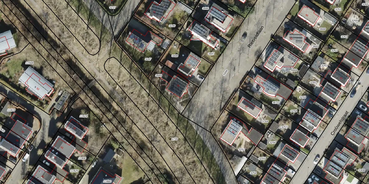 Rietveldlaan 49 is gelegen op kadastraal perceel GNG01AC3449. Deze kadastrale aanduiding is uniek en wordt gebruikt door het Kadaster om eigendomsrechten en andere zakelijke rechten vast te leggen. Het perceel maakt onderdeel uit van de kadastrale gemeente Groningen.