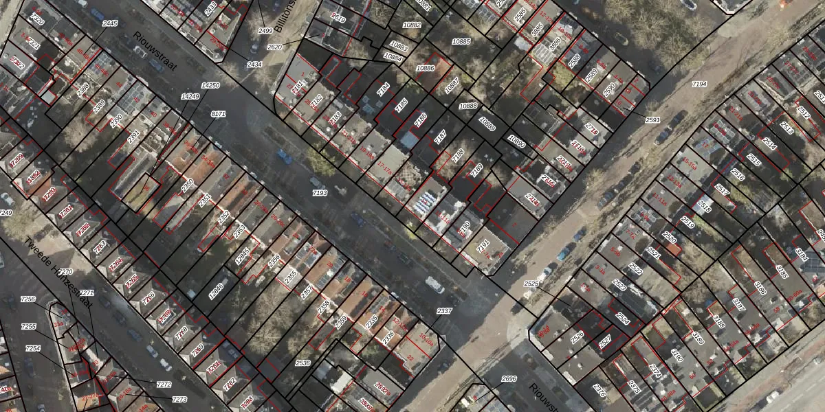 Het perceel waarop Riouwstraat 13 staat heeft een oppervlakte van 167 m². Dit is een middelgroot perceel. De perceeloppervlakte wordt geregistreerd door het Kadaster. Gedetailleerde informatie over de maten van dit perceel kunt u vinden in het rapport Kadastrale kaart met maatvoering van Riouwstraat 13.