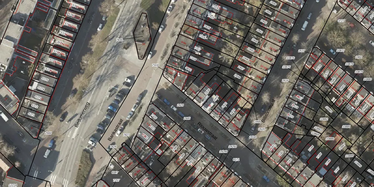 Riouwstraat 39 is gelegen op kadastraal perceel GNG00A2429. Deze kadastrale aanduiding is uniek en wordt gebruikt door het Kadaster om eigendomsrechten en andere zakelijke rechten vast te leggen. Het perceel maakt onderdeel uit van de kadastrale gemeente Groningen.