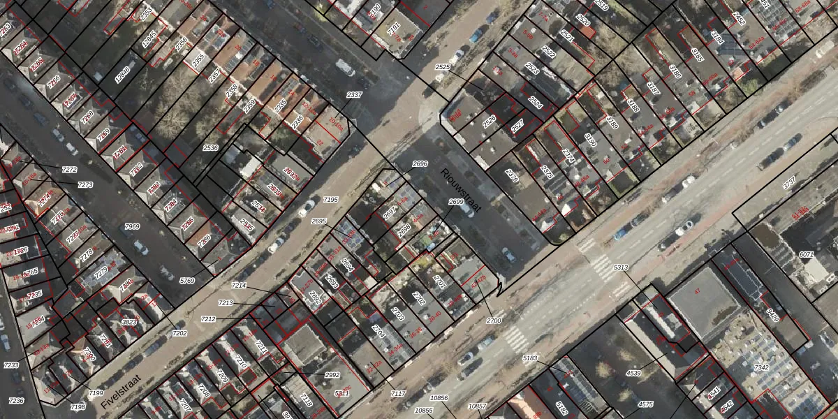Het perceel waarop Riouwstraat 4 staat heeft een oppervlakte van 90 m². Dit is een klein perceel. De perceeloppervlakte wordt geregistreerd door het Kadaster. Gedetailleerde informatie over de maten van dit perceel kunt u vinden in het rapport Kadastrale kaart met maatvoering van Riouwstraat 4.