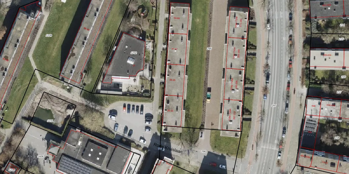 Het perceel waarop Rode Kruislaan 41 staat heeft een oppervlakte van 4354 m². Dit is een zeer groot perceel. De perceeloppervlakte wordt geregistreerd door het Kadaster. Gedetailleerde informatie over de maten van dit perceel kunt u vinden in het rapport Kadastrale kaart met maatvoering van Rode Kruislaan 41.