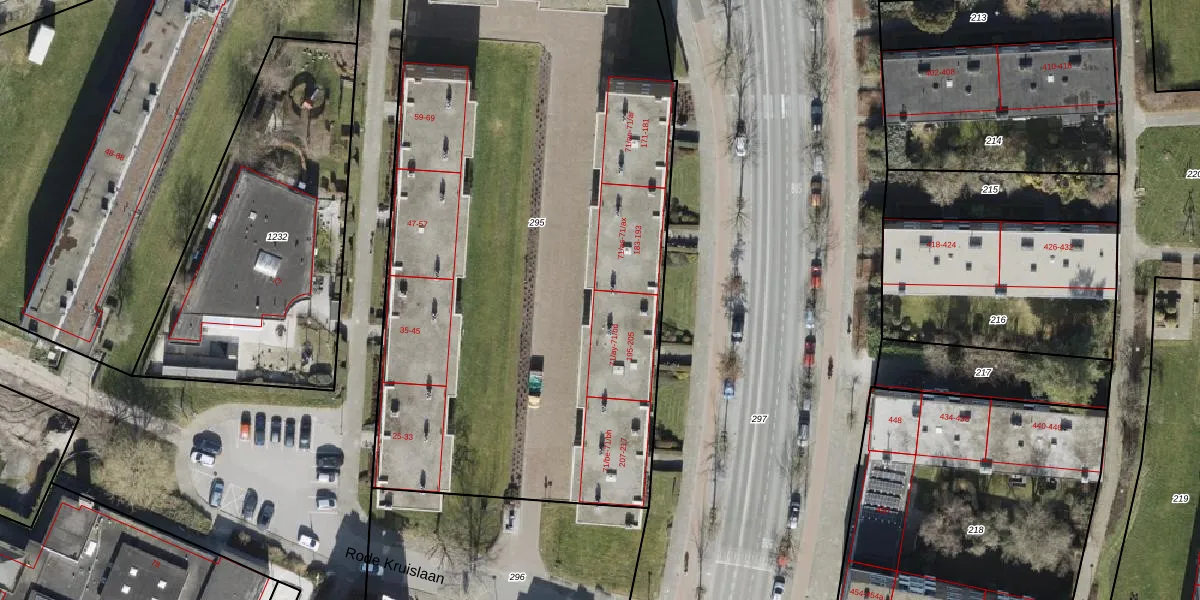 Het perceel waarop Rode Kruislaan 71-ay staat heeft een oppervlakte van 4354 m². Dit is een zeer groot perceel. De perceeloppervlakte wordt geregistreerd door het Kadaster. Gedetailleerde informatie over de maten van dit perceel kunt u vinden in het rapport Kadastrale kaart met maatvoering van Rode Kruislaan 71-ay.