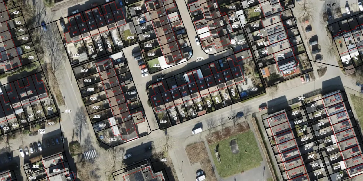 Gebruik de zoekbalk of klik op een perceel voor informatie over de adressen binnen dit perceel.