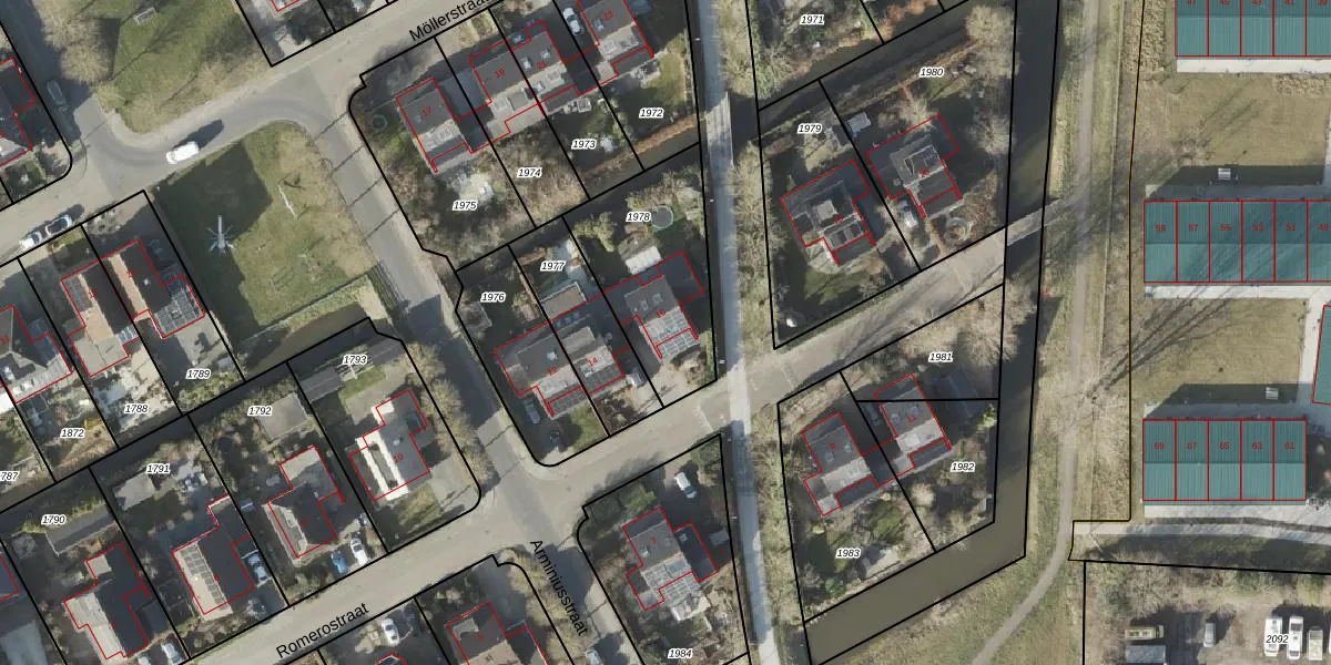 Het perceel waarop Romerostraat 16 staat heeft een oppervlakte van 532 m². Dit is een groot perceel. De perceeloppervlakte wordt geregistreerd door het Kadaster. Gedetailleerde informatie over de maten van dit perceel kunt u vinden in het rapport Kadastrale kaart met maatvoering van Romerostraat 16.