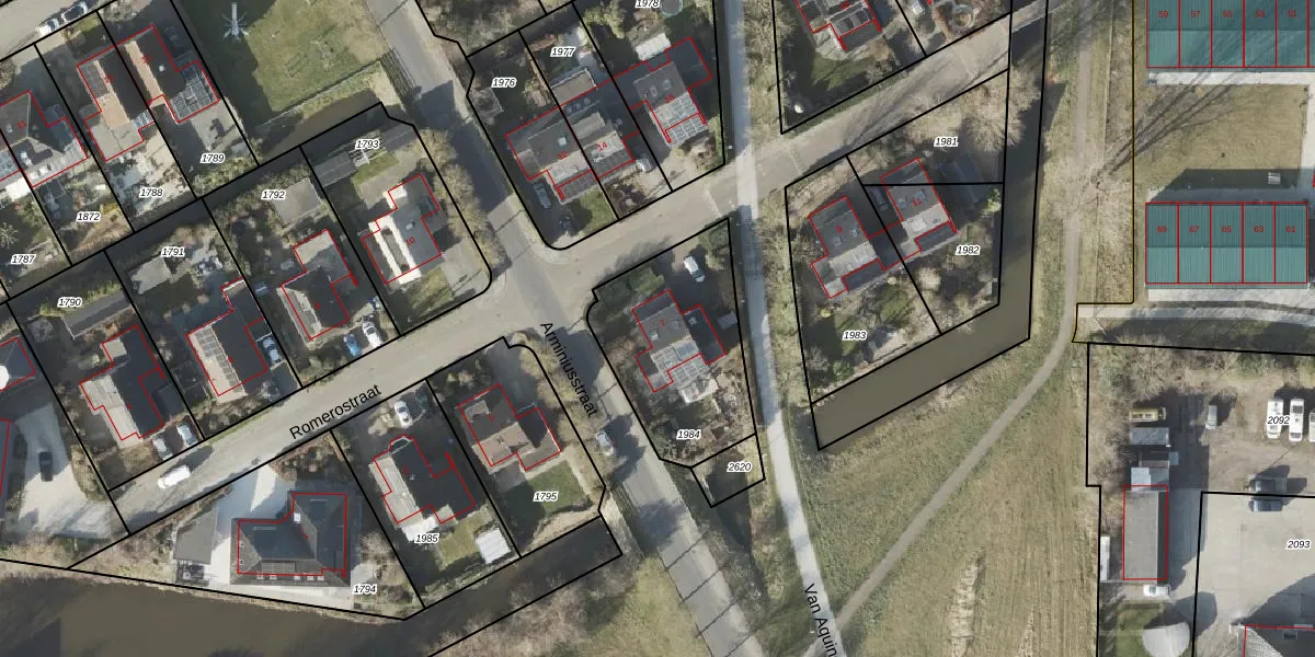 Het perceel waarop Romerostraat 7 staat heeft een oppervlakte van 613 m². Dit is een groot perceel. De perceeloppervlakte wordt geregistreerd door het Kadaster. Gedetailleerde informatie over de maten van dit perceel kunt u vinden in het rapport Kadastrale kaart met maatvoering van Romerostraat 7.