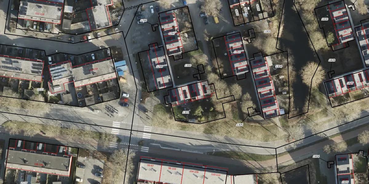 Scheltemaheerd 13 is gelegen op kadastraal perceel GNG01AB1301. Deze kadastrale aanduiding is uniek en wordt gebruikt door het Kadaster om eigendomsrechten en andere zakelijke rechten vast te leggen. Het perceel maakt onderdeel uit van de kadastrale gemeente Groningen.