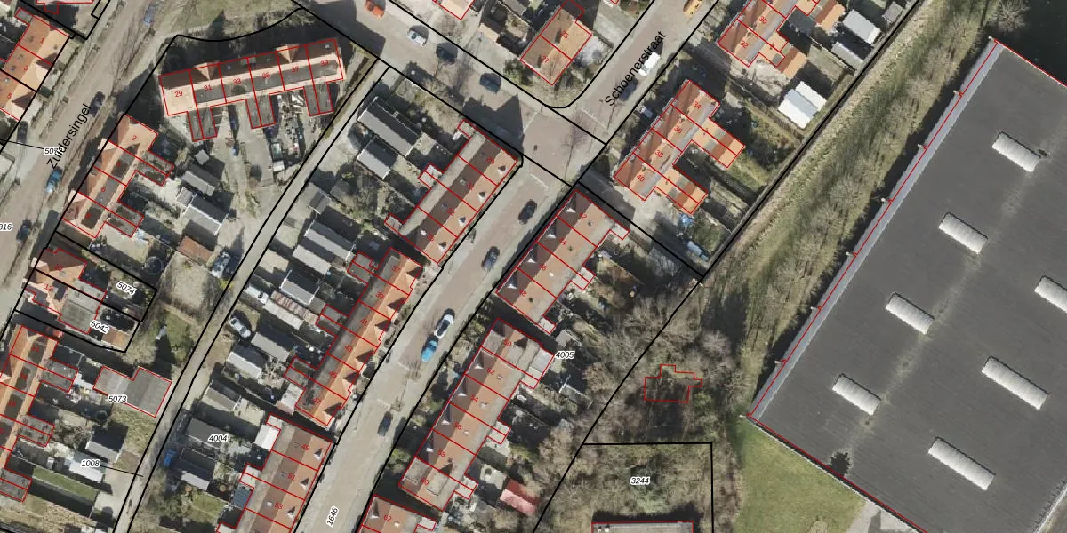 Het perceel waarop Schoenerstraat 46 staat heeft een oppervlakte van 2696 m². Dit is een zeer groot perceel. De perceeloppervlakte wordt geregistreerd door het Kadaster. Gedetailleerde informatie over de maten van dit perceel kunt u vinden in het rapport Kadastrale kaart met maatvoering van Schoenerstraat 46.