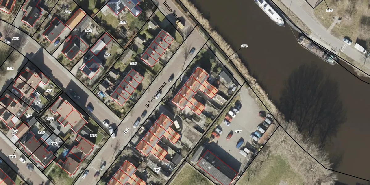 Het perceel waarop Schoenerstraat 6 staat heeft een oppervlakte van 4929 m². Dit is een zeer groot perceel. De perceeloppervlakte wordt geregistreerd door het Kadaster. Gedetailleerde informatie over de maten van dit perceel kunt u vinden in het rapport Kadastrale kaart met maatvoering van Schoenerstraat 6.