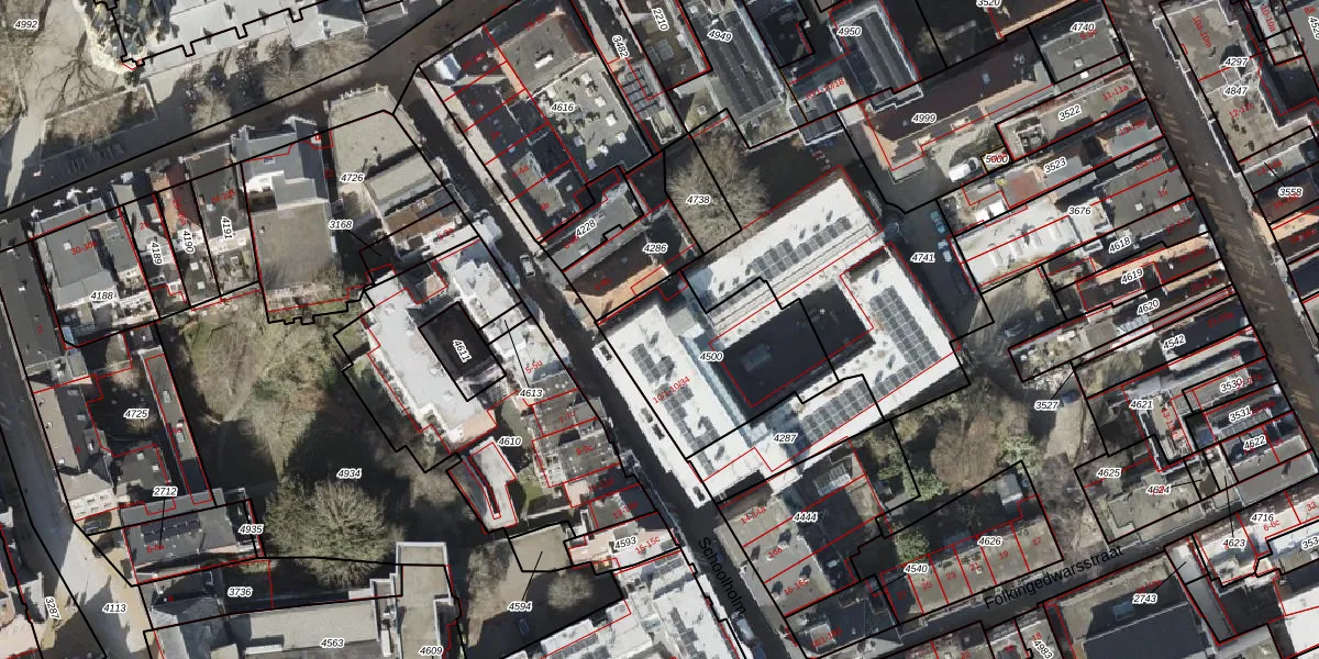 Schoolholm 10-17 is gelegen op kadastraal perceel GNG00I4500. Deze kadastrale aanduiding is uniek en wordt gebruikt door het Kadaster om eigendomsrechten en andere zakelijke rechten vast te leggen. Het perceel maakt onderdeel uit van de kadastrale gemeente Groningen.