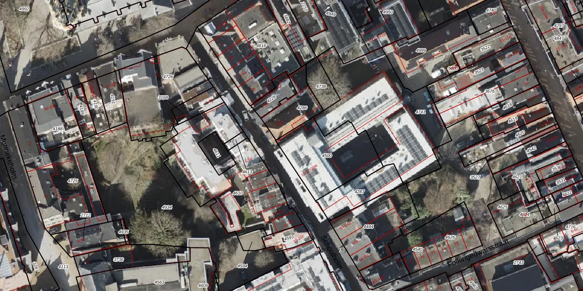 Schoolholm 10-2 is gelegen op kadastraal perceel GNG00I4500. Deze kadastrale aanduiding is uniek en wordt gebruikt door het Kadaster om eigendomsrechten en andere zakelijke rechten vast te leggen. Het perceel maakt onderdeel uit van de kadastrale gemeente Groningen.