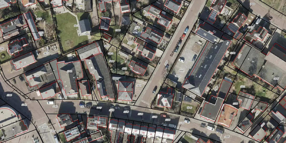 Het perceel waarop Schouwstraat 9 staat heeft een oppervlakte van 371 m². Dit is een groot perceel. De perceeloppervlakte wordt geregistreerd door het Kadaster. Gedetailleerde informatie over de maten van dit perceel kunt u vinden in het rapport Kadastrale kaart met maatvoering van Schouwstraat 9.