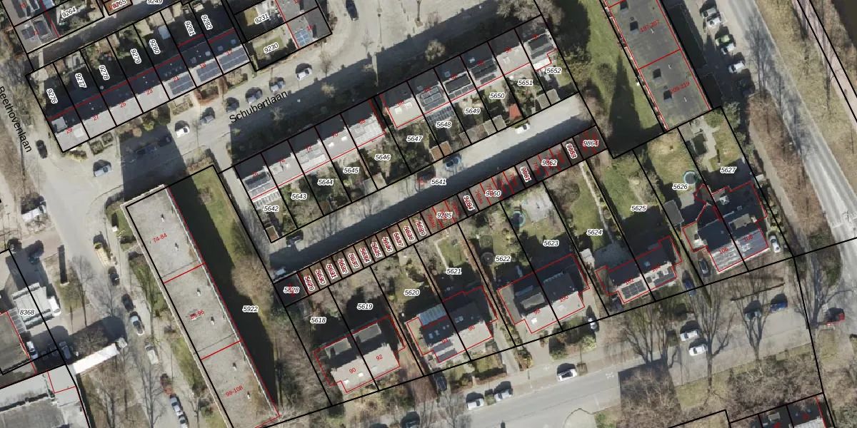 Het perceel waarop Schubertlaan 76-aq staat heeft een oppervlakte van 57 m². Dit is een klein perceel. De perceeloppervlakte wordt geregistreerd door het Kadaster. Gedetailleerde informatie over de maten van dit perceel kunt u vinden in het rapport Kadastrale kaart met maatvoering van Schubertlaan 76-aq.