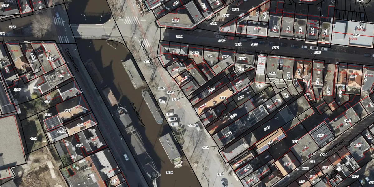 Schuitendiep 62-1 is gelegen op kadastraal perceel GNG00G5166. Deze kadastrale aanduiding is uniek en wordt gebruikt door het Kadaster om eigendomsrechten en andere zakelijke rechten vast te leggen. Het perceel maakt onderdeel uit van de kadastrale gemeente Groningen.