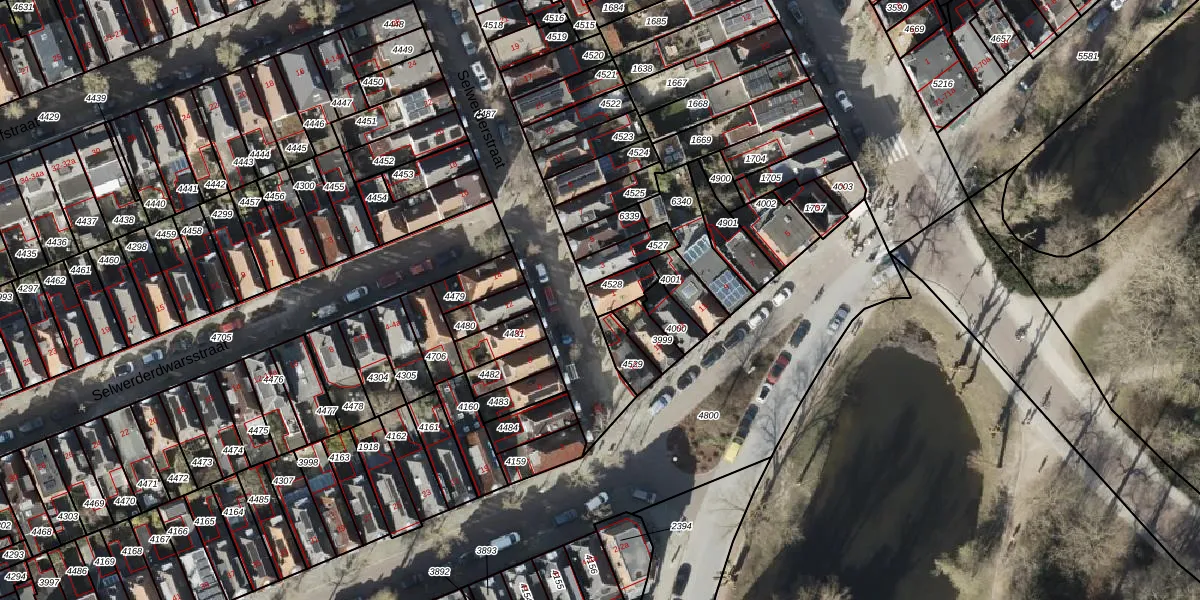 Gebruik de zoekbalk of klik op een perceel voor informatie over de adressen binnen dit perceel.