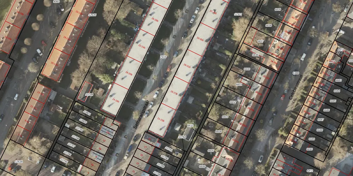 Het perceel waarop Semarangstraat 27-a staat heeft een oppervlakte van 3836 m². Dit is een zeer groot perceel. De perceeloppervlakte wordt geregistreerd door het Kadaster. Gedetailleerde informatie over de maten van dit perceel kunt u vinden in het rapport Kadastrale kaart met maatvoering van Semarangstraat 27-a.
