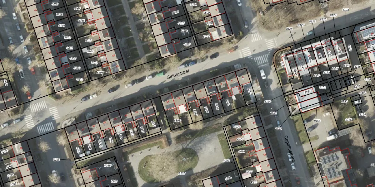 Het perceel waarop Siriusstraat 14 staat heeft een oppervlakte van 115 m². Dit is een middelgroot perceel. De perceeloppervlakte wordt geregistreerd door het Kadaster. Gedetailleerde informatie over de maten van dit perceel kunt u vinden in het rapport Kadastrale kaart met maatvoering van Siriusstraat 14.