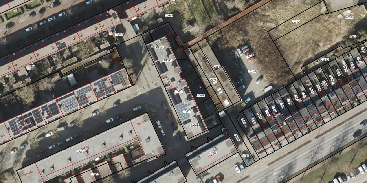 Het adres ligt op het perceel GNG00-A-10664, dat zich in de kadastrale gemeente Groningen bevindt. De gemiddelde perceeloppervlakte in de kadastrale gemeente Groningen is 770,7 m². Dit perceel is met zijn 1145 m² dus groter dan gemiddeld. Het grootste perceel in de kadastrale gemeente is 31,8 ha. Het kleinste perceel heeft een oppervlakte van 0 m². Op het perceel zijn 23 adressen aanwezig. De huidige grenzen van het perceel zijn digitaal in de Basisregistratie Kadaster (BRK) geregistreerd op 02-03-2007.