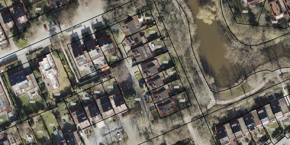 Gebruik de zoekbalk of klik op een perceel voor informatie over de adressen binnen dit perceel.