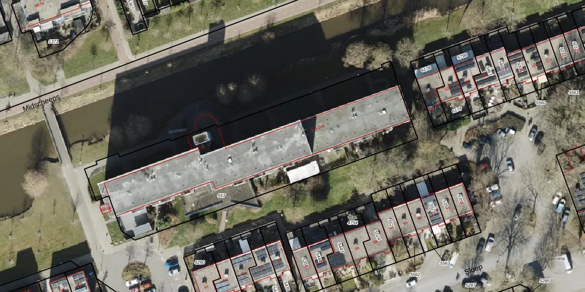 Het perceel waarop Sloep 173 staat heeft een oppervlakte van 2977 m². Dit is een zeer groot perceel. De perceeloppervlakte wordt geregistreerd door het Kadaster. Gedetailleerde informatie over de maten van dit perceel kunt u vinden in het rapport Kadastrale kaart met maatvoering van Sloep 173.