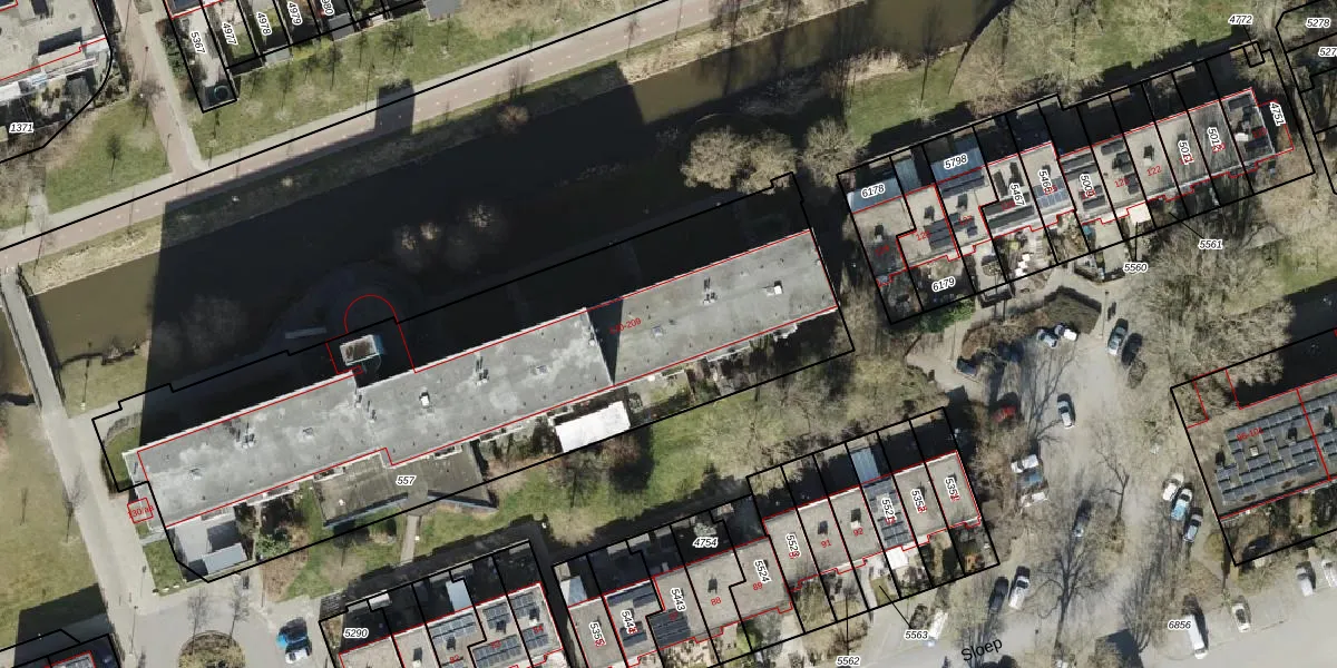 Het perceel waarop Sloep 198 staat heeft een oppervlakte van 2977 m². Dit is een zeer groot perceel. De perceeloppervlakte wordt geregistreerd door het Kadaster. Gedetailleerde informatie over de maten van dit perceel kunt u vinden in het rapport Kadastrale kaart met maatvoering van Sloep 198.
