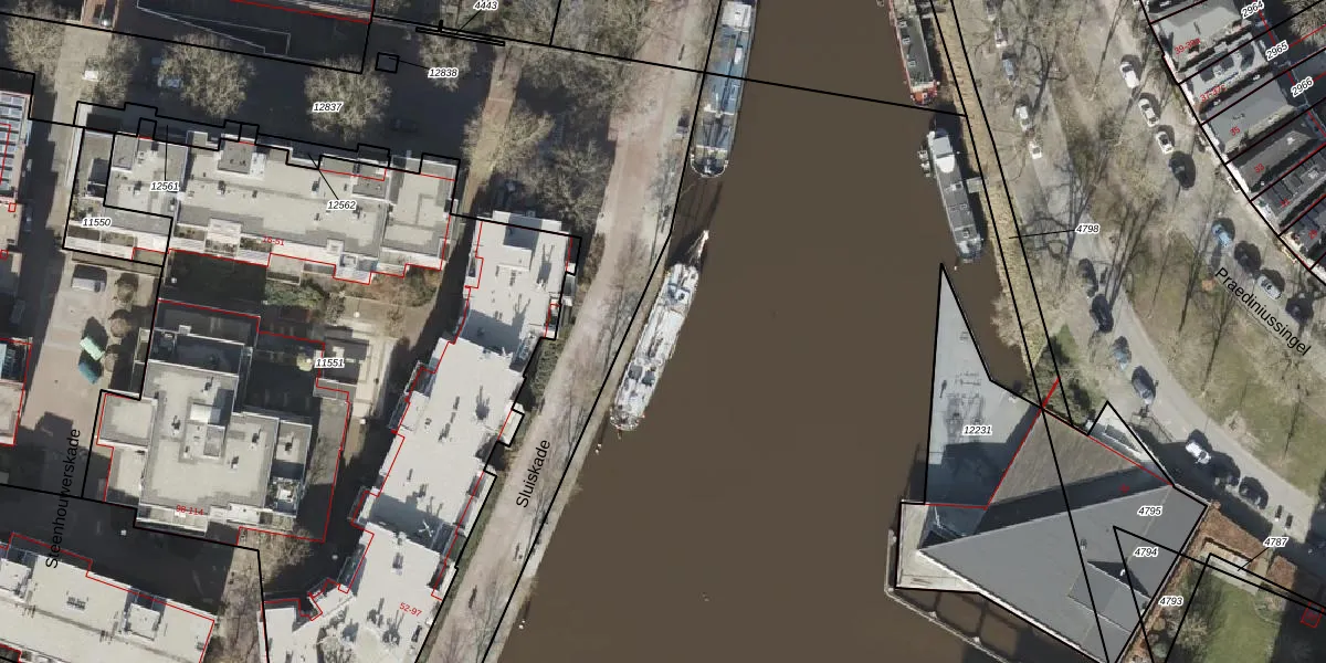 Sluiskade 1003 is gelegen op kadastraal perceel GNG00C12232. Deze kadastrale aanduiding is uniek en wordt gebruikt door het Kadaster om eigendomsrechten en andere zakelijke rechten vast te leggen. Het perceel maakt onderdeel uit van de kadastrale gemeente Groningen.