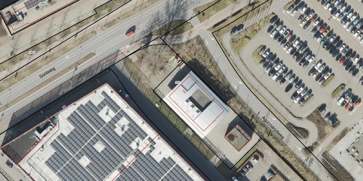 Het perceel waarop Sontweg 1-aa staat heeft een oppervlakte van 1463 m². Dit is een zeer groot perceel. De perceeloppervlakte wordt geregistreerd door het Kadaster. Gedetailleerde informatie over de maten van dit perceel kunt u vinden in het rapport Kadastrale kaart met maatvoering van Sontweg 1-aa.