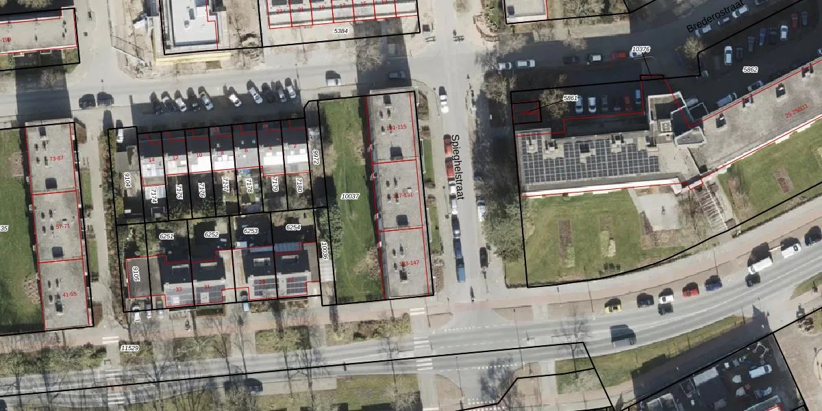 Het perceel waarop Spieghelstraat 121 staat heeft een oppervlakte van 1177 m². Dit is een zeer groot perceel. De perceeloppervlakte wordt geregistreerd door het Kadaster. Gedetailleerde informatie over de maten van dit perceel kunt u vinden in het rapport Kadastrale kaart met maatvoering van Spieghelstraat 121.