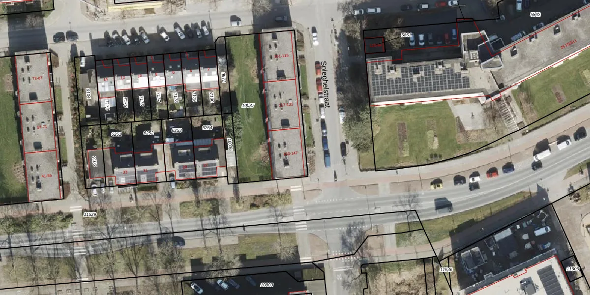 Het perceel waarop Spieghelstraat 135 staat heeft een oppervlakte van 1177 m². Dit is een zeer groot perceel. De perceeloppervlakte wordt geregistreerd door het Kadaster. Gedetailleerde informatie over de maten van dit perceel kunt u vinden in het rapport Kadastrale kaart met maatvoering van Spieghelstraat 135.