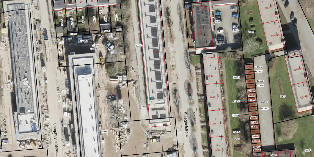 Het perceel waarop Spieghelstraat 23 staat heeft een oppervlakte van 2285 m². Dit is een zeer groot perceel. De perceeloppervlakte wordt geregistreerd door het Kadaster. Gedetailleerde informatie over de maten van dit perceel kunt u vinden in het rapport Kadastrale kaart met maatvoering van Spieghelstraat 23.