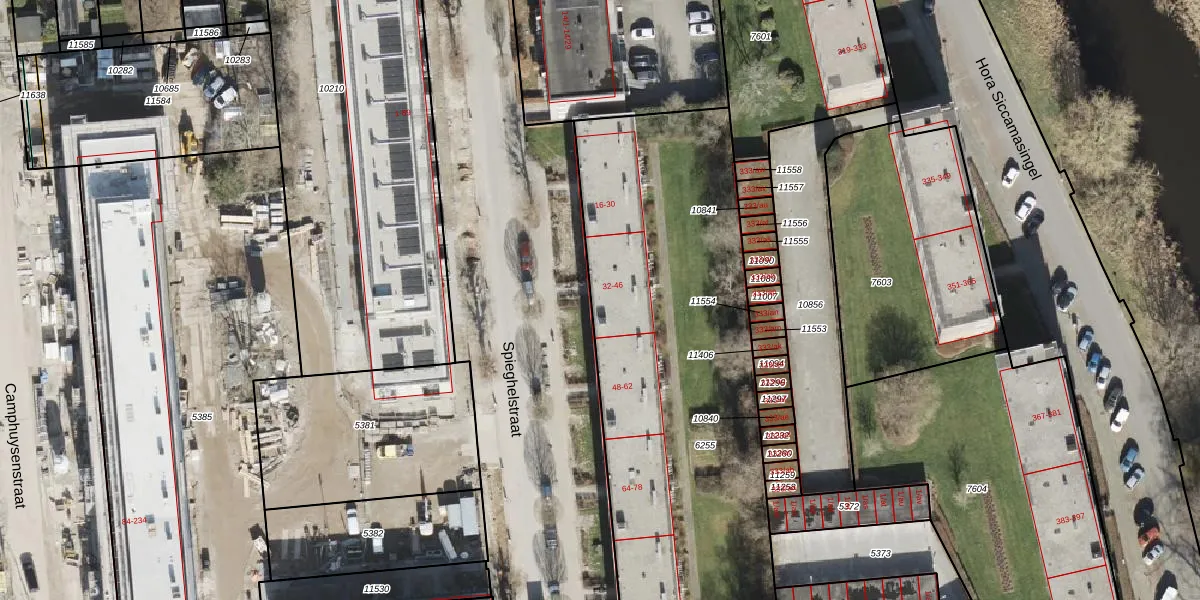 Het perceel waarop Spieghelstraat 36 staat heeft een oppervlakte van 3172 m². Dit is een zeer groot perceel. De perceeloppervlakte wordt geregistreerd door het Kadaster. Gedetailleerde informatie over de maten van dit perceel kunt u vinden in het rapport Kadastrale kaart met maatvoering van Spieghelstraat 36.