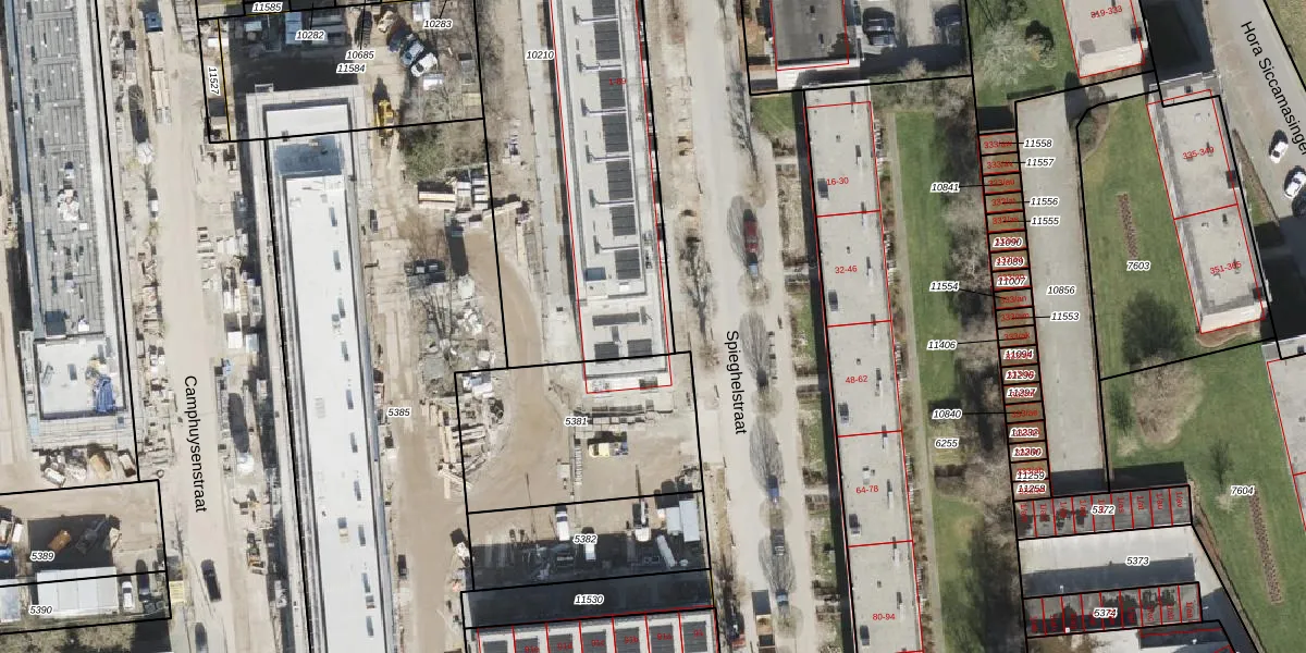 Het perceel waarop Spieghelstraat 43 staat heeft een oppervlakte van 2285 m². Dit is een zeer groot perceel. De perceeloppervlakte wordt geregistreerd door het Kadaster. Gedetailleerde informatie over de maten van dit perceel kunt u vinden in het rapport Kadastrale kaart met maatvoering van Spieghelstraat 43.