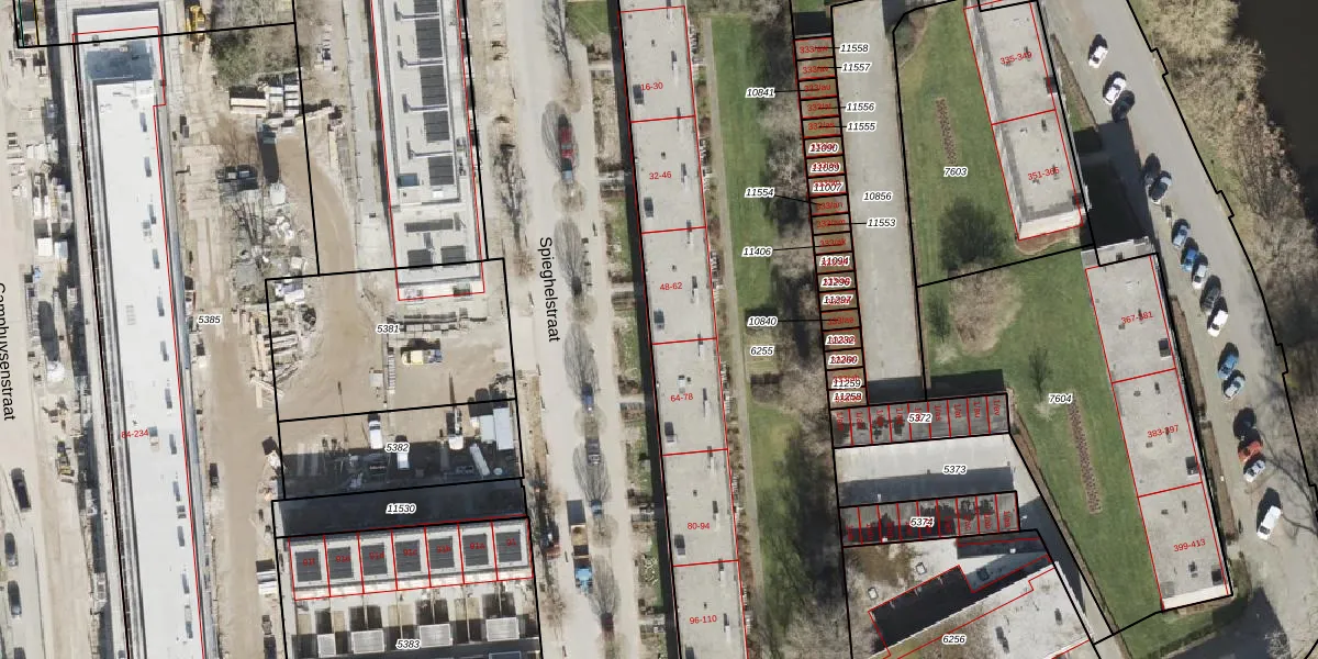 Het perceel waarop Spieghelstraat 54 staat heeft een oppervlakte van 3172 m². Dit is een zeer groot perceel. De perceeloppervlakte wordt geregistreerd door het Kadaster. Gedetailleerde informatie over de maten van dit perceel kunt u vinden in het rapport Kadastrale kaart met maatvoering van Spieghelstraat 54.