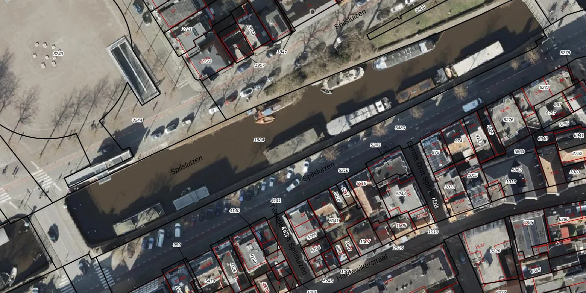 Het perceel waarop Spilsluizen 1008 staat heeft een oppervlakte van 3750 m². Dit is een zeer groot perceel. De perceeloppervlakte wordt geregistreerd door het Kadaster. Gedetailleerde informatie over de maten van dit perceel kunt u vinden in het rapport Kadastrale kaart met maatvoering van Spilsluizen 1008.